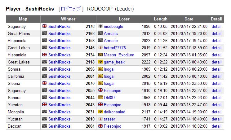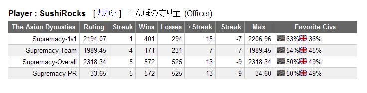 過去30戦20勝10敗。レートも中佐の真ん中までサクッと戻る。